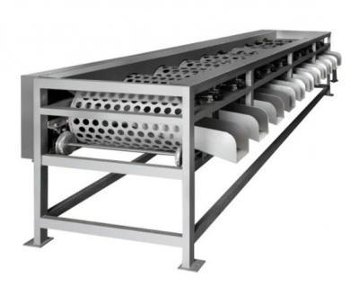 本設(shè)備是全不銹鋼果蔬分選機(jī)械,是由上果輸送機(jī)和滾杠式分選機(jī)組成;上果輸送機(jī)通過(guò)滾杠自動(dòng)旋轉(zhuǎn)來(lái)達(dá)到均勻上料,滾杠式分級(jí)機(jī)根據(jù)果蔬直徑大小來(lái)分選;