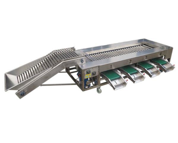 簡介—本設備是全不銹鋼果蔬分選機械,是由上果輸送機和滾杠式分選機組成;上果輸送機通過滾杠自動旋轉來達到均勻上料,滾杠式分級機根據果蔬直徑大小來分選;