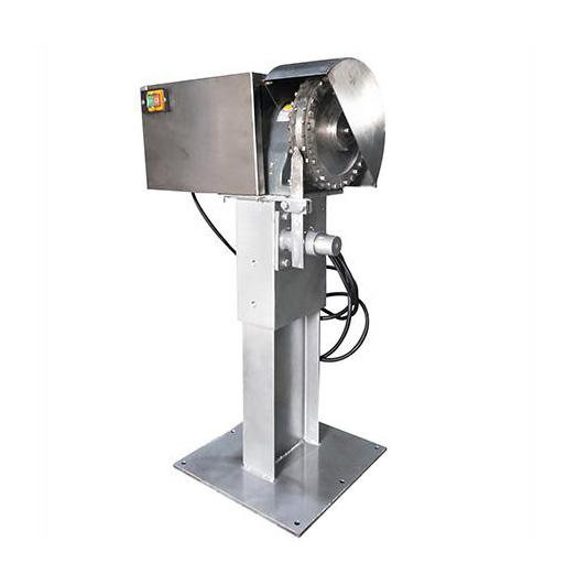 椰子剝殼機(jī)是將去棕后的椰子最外層堅(jiān)硬的椰殼去掉,此款剝殼機(jī)是一種半自動(dòng)化設(shè)備,機(jī)器主要由圓形刀盤(pán)、硬質(zhì)合金刀頭、楔形頂料刀及減速電機(jī)等組成。機(jī)器工作時(shí)候,人工手握去棕椰子將其前段的胚芽口位置對(duì)準(zhǔn)楔形頂料刀,下壓下去,此時(shí)轉(zhuǎn)動(dòng)的剝刀盤(pán)與楔形頂料刀對(duì)放入其中的椰子形成了擠壓剝除力,從而順利將椰殼從椰肉剝離開(kāi)。